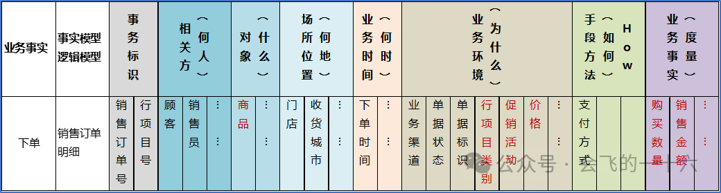 确定相关方、交易物、位置场所、业务时间、业务环境、业务事实,原子性和完整性。确保业务事实的单行实例与物理的业务过程事件实例具有一对一关系。