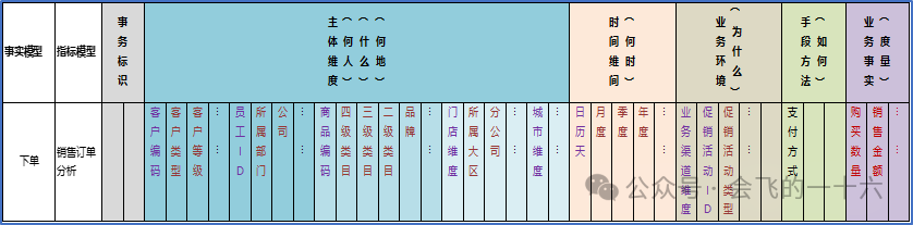 维度:维度通过“何人、什么、何地、何时、为什么、如何”(5W1H)等要素描述相关业务过程事件的上下文环境。