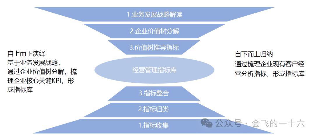 通过自上而下的价值树分解(Top-down)与自下而上的经营分析指标梳理(Bottom-up)形成经营指标库 。