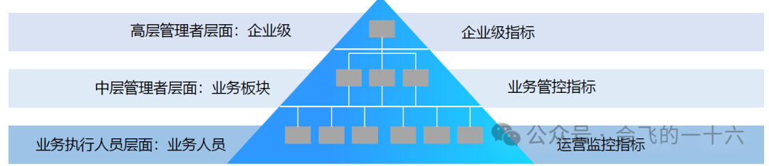 企业级指标:和大的业务流程紧密联系,通常用于高层管理者对企业整体运营情况的监控关键的结果导向指标,直接和整个企业的业务目标关联。业务板块指标:和公司业务目标和业务流程紧密联系,通常用于对公司运营情况的监控。可以向上汇总到企业级KPI运营层指标:和各作业区的目标紧密联系,通常用于对生产流程和技术工艺的监控 。关注运营层面和具体的操作环节