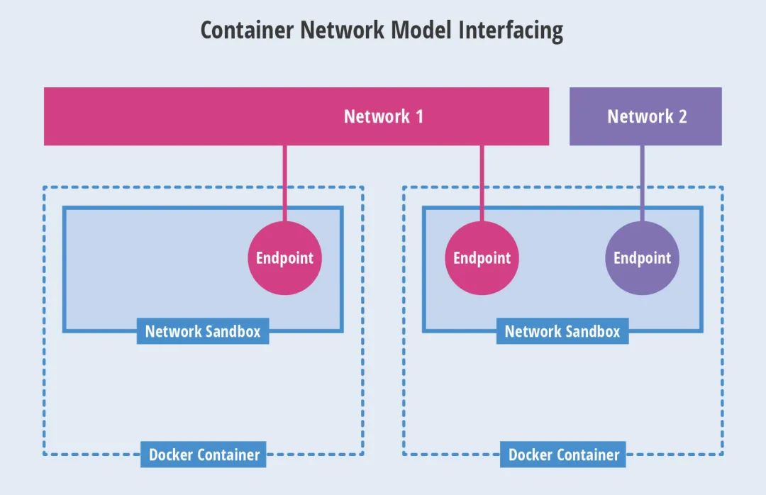 Network Sandbox:容器内部的网络栈,包括网络接口、路由表、DNS 等配置的管理。Sandbox 可用 Linux 网络命名空间、FreeBSD Jail 等机制进行实现。一个 Sandbox 可以包含多个 Endpoint。 Endpoint:用于将容器内的 Sandbox 与外部网络相连的网络接口。可以使用 veth pair、Open vSwitch 的内部 port 等技术进行实现。一个 Endpoint 仅能够加入一个 Network。 Network:可以直接互连的 Endpoint 的集合。可以通过 Linux bridge、VLAN 等技术进行实现。一个 Network 包含多个 Endpoint。
