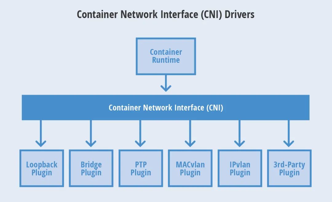 K8s 网络模型采用 CNI(Container Network Interface, 容器网络接口) 协议,只要提供一个标准的接口,就能为同样满足该协议的所有容器平台提供网络功能。