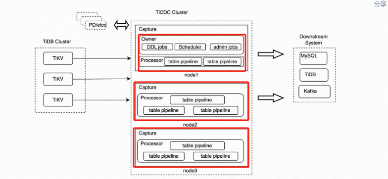 - 各个 Capture 进程开始从对应的 TiKV 节点拉取信息,进行处理后完成同步。