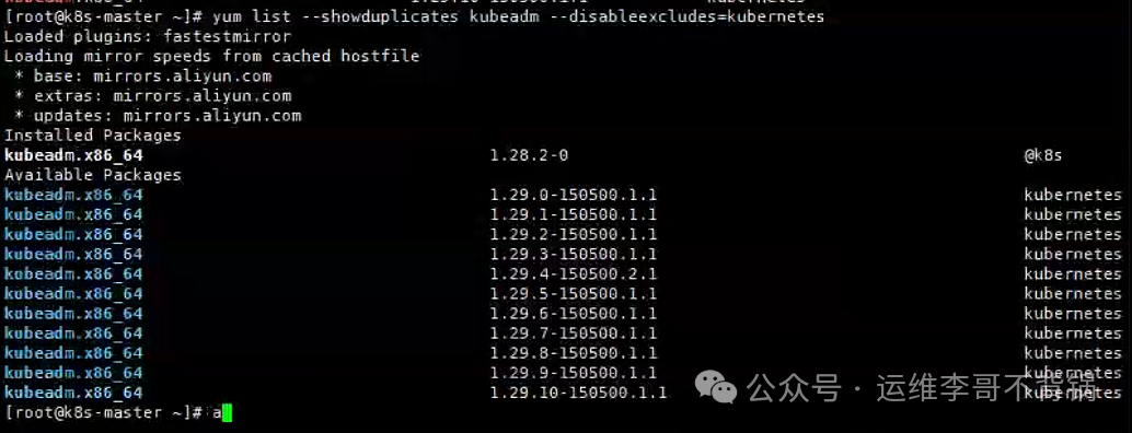 sudo yum install -y kubeadm-'1.29.x-*' --disableexcludes=kubernetes