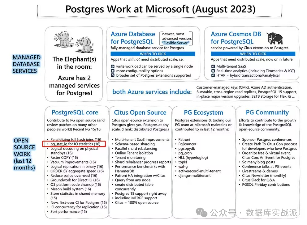 根据2023年8月数据,微软已经为PostgreSQL核心功能做出了不少贡献,例如“pg_stat_io for IO statistics”功能。同时,微软一直积极在PostgreSQL核心、Citus Open Source等多个领域提交代码和改进功能。微软甚至帮助了PostgreSQL在多租户环境和大规模SaaS应用的改进。PostgreSQL和SQL Server本质上同宗同源,微软对PostgreSQL贡献代码实属不难,通过持续贡献代码,微软在未来有可能对PostgreSQL的发展掌握更大话语权。