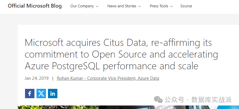 微软在2019年1月宣布收购Citus Data公司,这是一家为PostgreSQL提供分布式扩展解决方案的公司。微软通过这个收购不仅加强了PostgreSQL在Azure中的应用,也进一步承诺了对开源和PostgreSQL社区的长期支持。