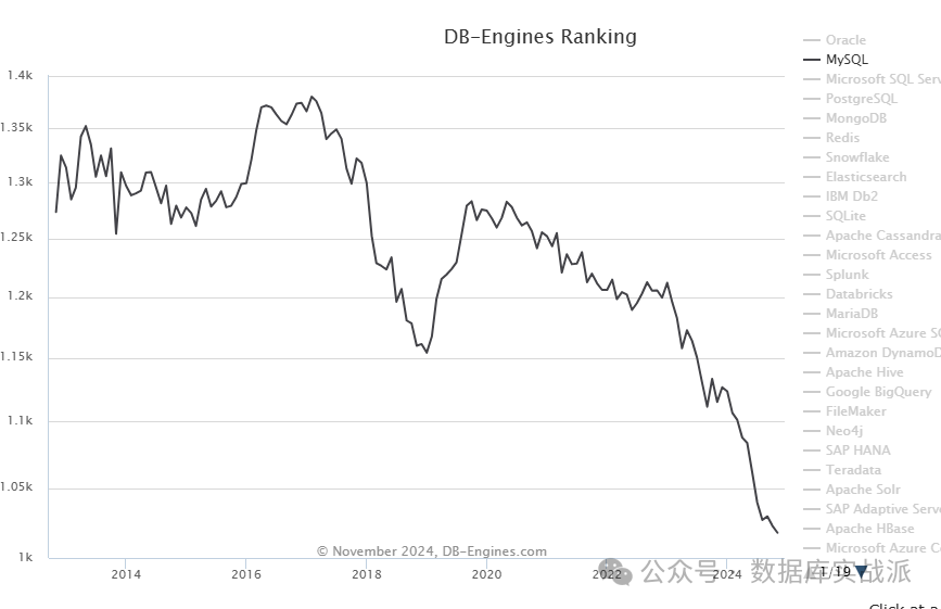 MySQL在2018年达到高峰之后,从2020年开始一直下降