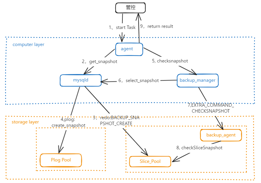3)如果实例关联的所有slice均完成快照,管控agent返回备份成功,否则返回失败。