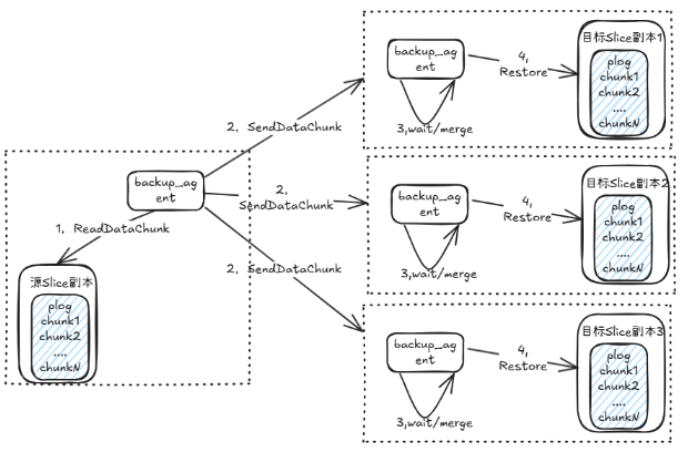 backup_agent对源slice(归属源实例)数据进行读取,并将其导入到恢复实例的新slice中;