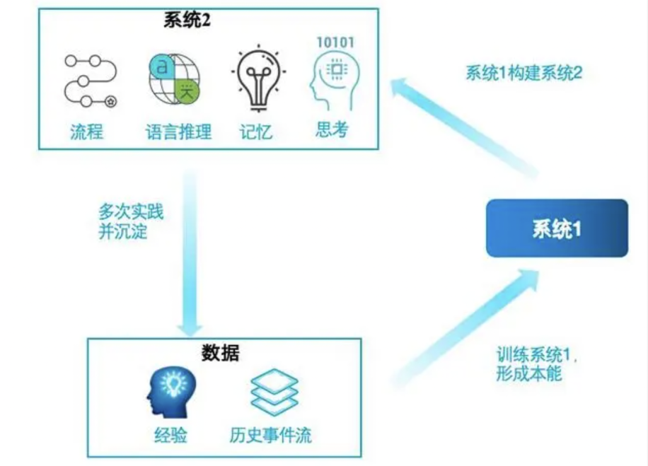 通过生成中间推理步骤来解决问题。依赖记忆调用,存储思考过程和对行为结果的反思,累积经验以优化后续行为。 反应时间比系统1慢,但改变所需时间相对较快。 优点是推理能力强,不过需要更多计算资源和时间。