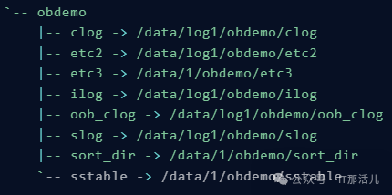 for t in {clog,etc2,ilog,slog,oob_clog};do ln -s /data/log1/$cluster_name/$t /home/admin/oceanbase/store/$cluster_name/$t; done
