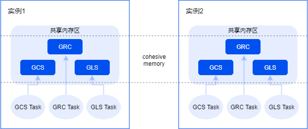 - GLS(Global Lock Service):负责管理非数据块类全局资源的调度,主要是各种类型的锁,GLS 在 GRC 提供的能力基础上实现实例之间申请全局锁的完整流程,由 GLS 线程组提供相应的服务。
