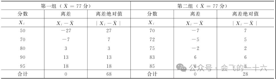 上述计算结果表明,虽然两个小组同学的英语平均考试成绩都是77分,但第二小组的平均差(5.6分)低于第一小组的平均差(13.6分),所以第二小组平均数的代表性高于第一小组。