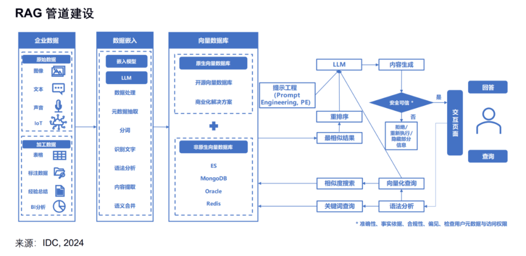 近日,国际数据公司(IDC)发布了《RAG与向量数据库市场前景预测》报告,报告绘制了RAG(检索增强生成)管道建设路径以及其中包含的主要技术和算法,收录并评估了市场中的主要厂商,为市场选型提供参考建议。星环科技凭借其在向量数据库和AI大模型领域的技术创新和实践,被评为向量数据库代表厂商。报告中指出,星环科技Transwarp Hippo是国内最早推出的向量数据库产品,并在核心性能、功能全面性、工程化落地和数据统一管理方面具备竞争优势。