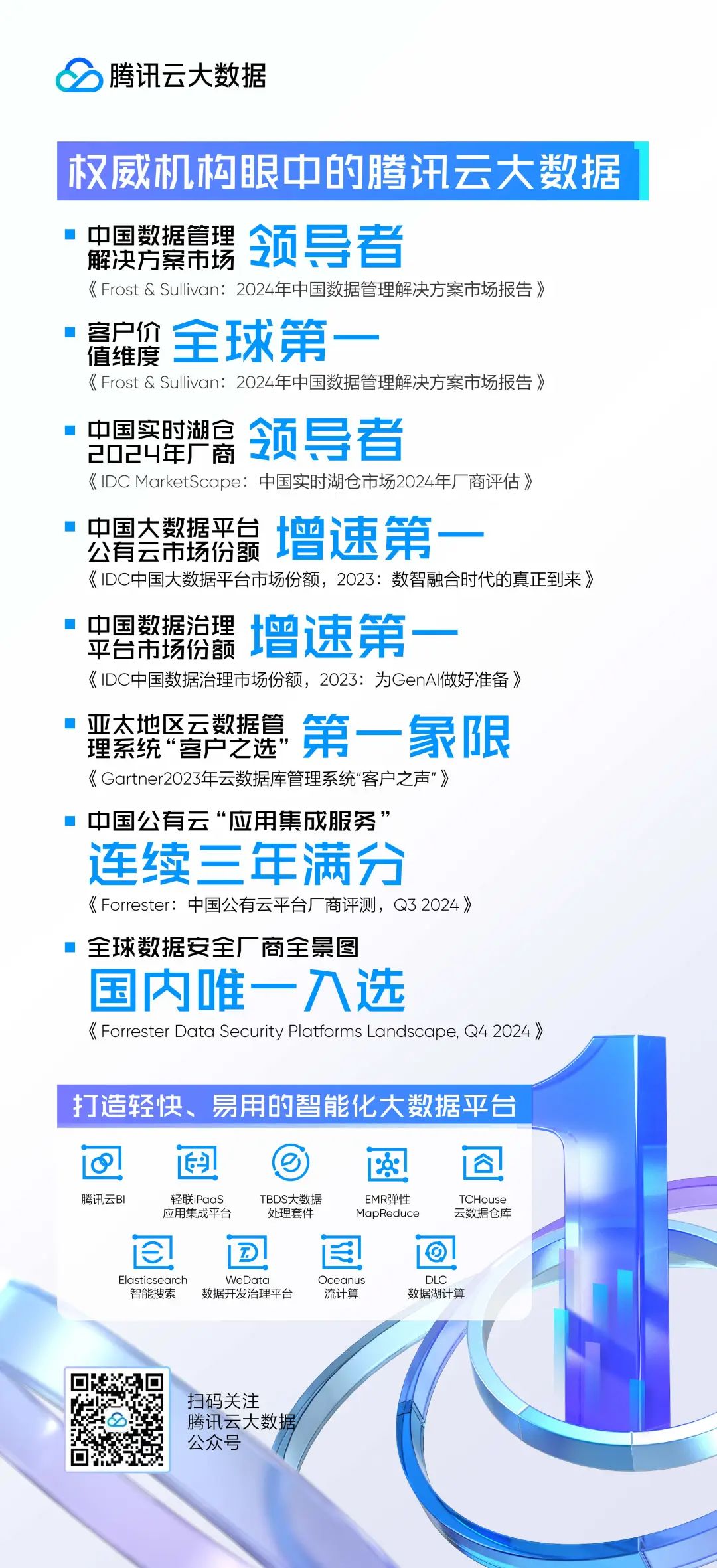 腾讯云大数据获得了多项第一,以及领导者称号!