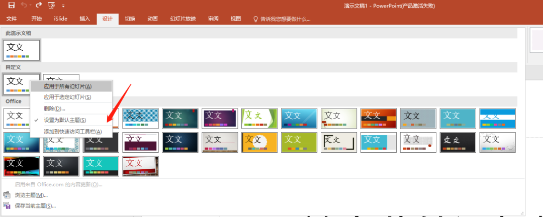 (6)右键保存的主题,选择"设置为默认主题",此时打开软件,就会直接展示刚才我们创建的微软雅黑字体了,