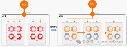 话回正传,弹性是PolarDB 的一个卖点,那么弹性的加入后,CPU的并行,跨机并行怎么做,就变得更复杂了。在之前弹性分为,有源弹性和无源弹性,这里有源弹性可以理解为,弹性本身是在一个固定的主机的配置上,增加弹性。无源弹性的机理是,主机在工作中,不提供CPU和内存,如果你不用就直接冬眠了,在冬眠期间的计费是停止的。