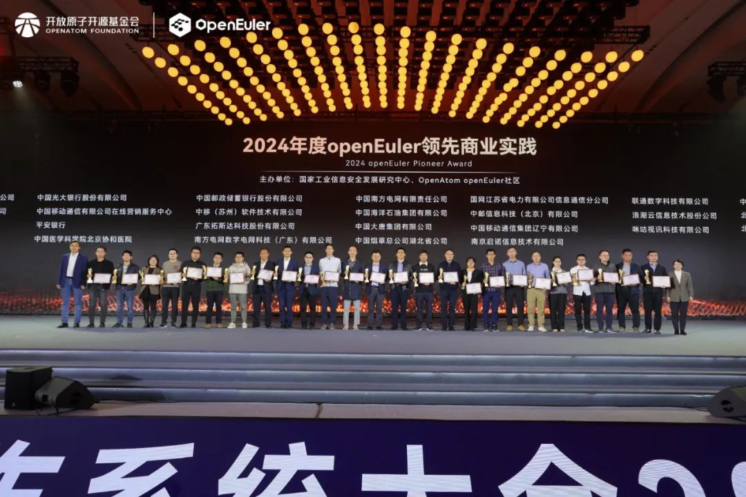 大会上,由统信UOS服务器版提供支持的“北京协和医院操作系统应用项目”、“中国烟草总公司湖北省公司操作系统应用项目”入选创新型“2024年度openEuler领先商业实践”,“福建移动操作系统迁移应用实践项目”入选规模型“2024年度openEuler领先商业实践”。