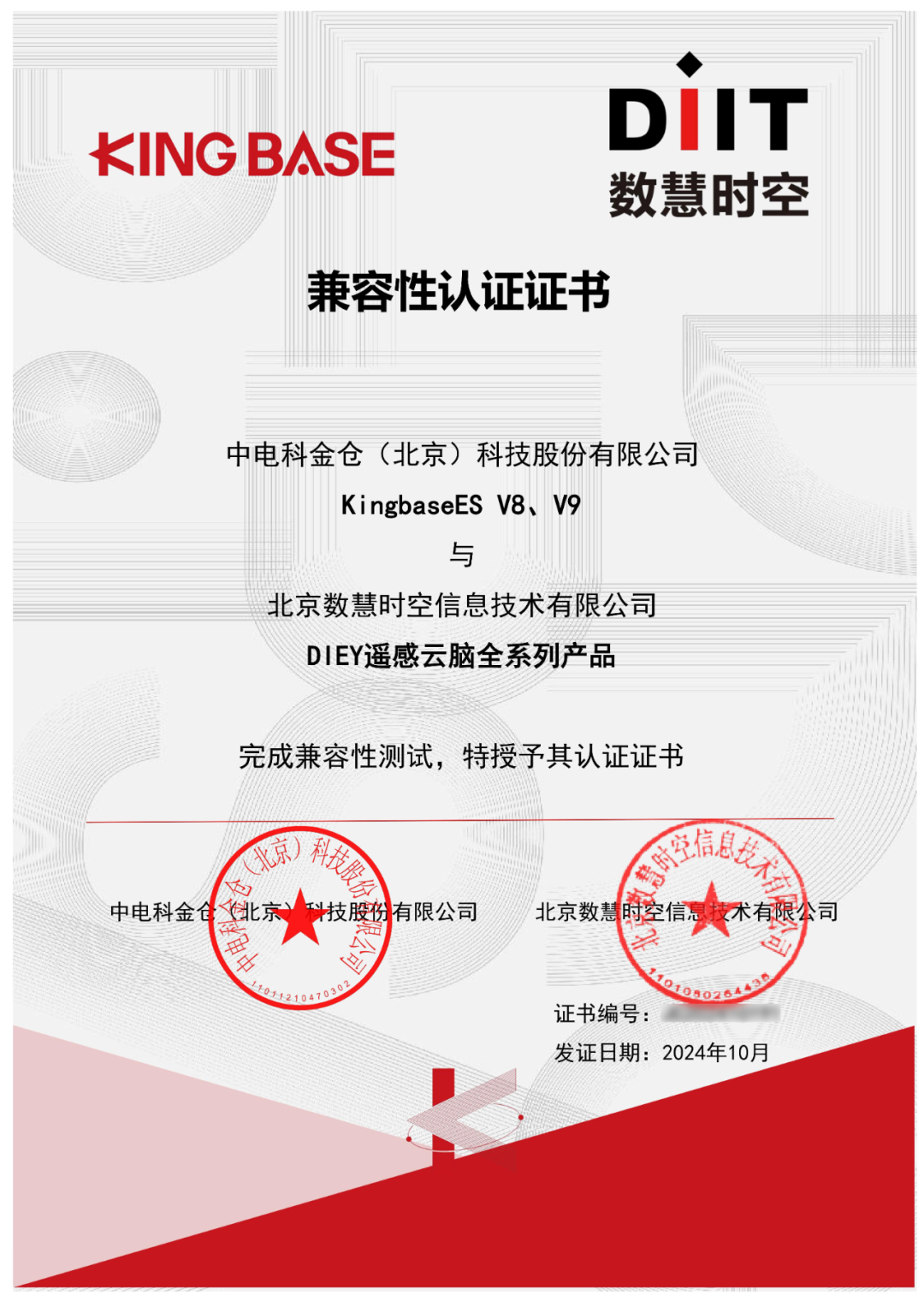 近日,电科金仓与北京数慧时空信息技术有限公司(以下简称“数慧时空”)完成产品适配互认。金仓数据库产品KingbaseES V8、V9与数慧时空两款软件产品—DIEY遥感云脑全系列产品、DIIF数智云脑全系列产品顺利完成兼容性、功能等方面的深度适配与性能调优。