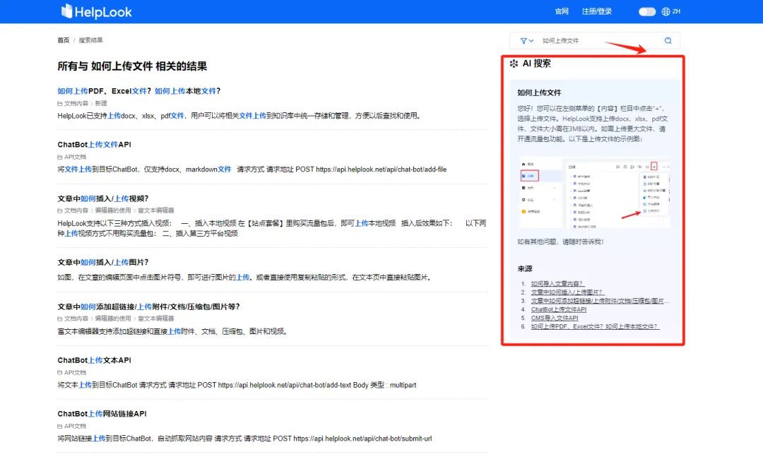 HelpLook集成的AI搜索与问答机器人功能,能够深入挖掘文档内容,提供精确高效的搜索解答。无论是内部员工还是外部用户,都能享受到即时响应的知识服务,提升工作效率与客户满意度。