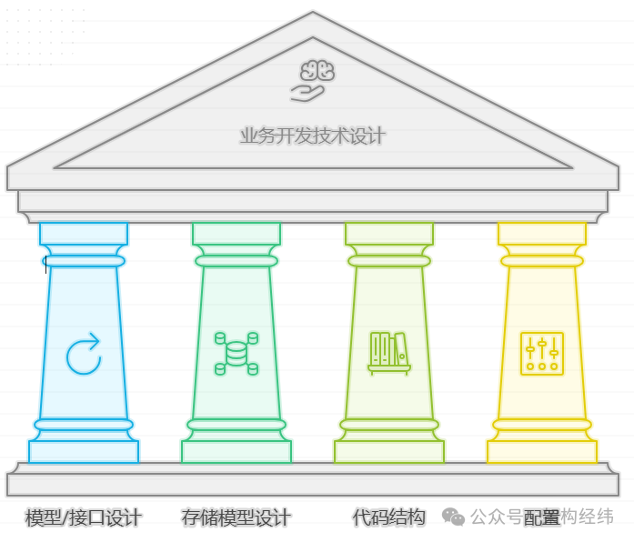 业务开发做技术设计的核心在于模型、接口和数据库表结构设计,以及业务逻辑的抽象能力。得益于公司大中台小前台的组织结构,前台业务开发人员不需要关心技术问题的具体实现,能全身心投入到业务中。