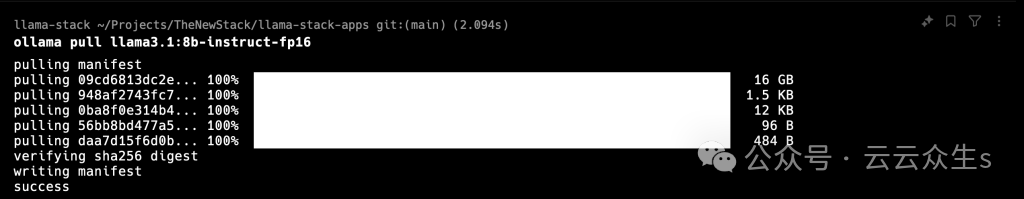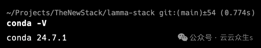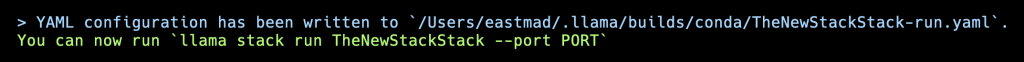 请注意,我的提示符反映了我们为 conda 指定的名称“llama-stack”。
