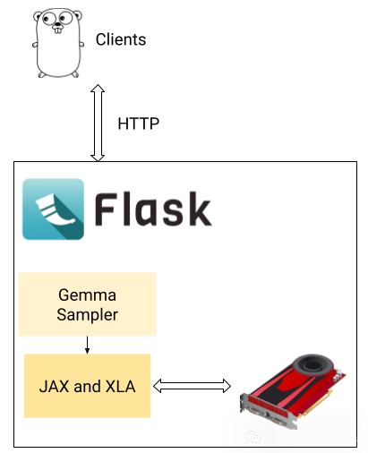 :客户端发送文本提示,服务器运行 Gemma 推理并在 JSON 响应中返回生成的文本echo