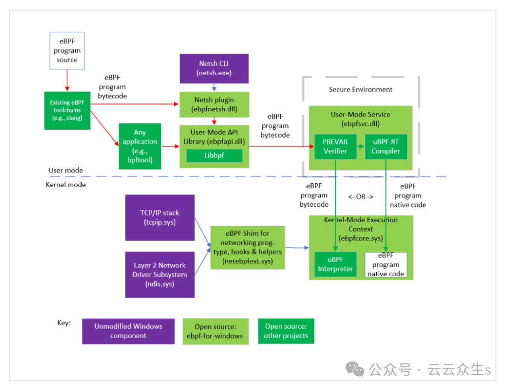 微软为其适用于 Windows 内核的 eBPF(Windows)提供的架构