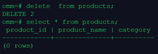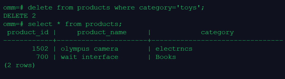 (五)、删除category为toys的所有记录,并查看products中数据是否删除成功
