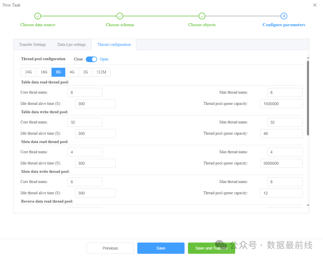 并且可以对迁移任务的线程池并行度和队列容量进一步配置。