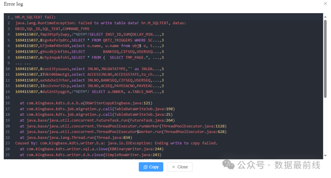 在详细的迁移预览页中可以看到迁移成功和失败的对象数量,对于失败的对象,可以通过Error Log来查看具体错误的原因,不过这个错误日志比较原始,就是JDBC操作数据时的报错,对于问题的分析和诊断,需要有一定的基础。