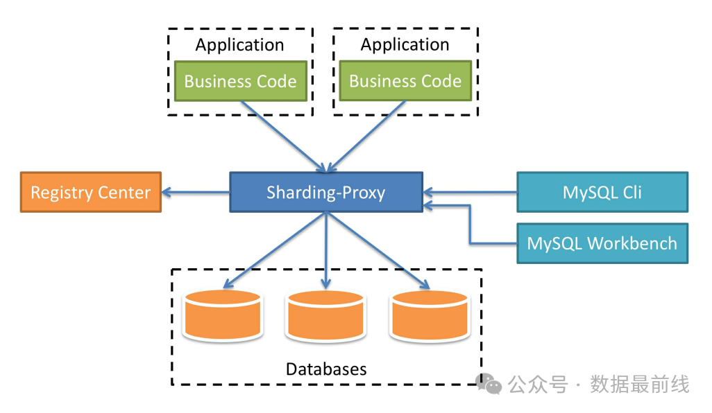 数据库中间件的主要起到代理的作用,应用直接和代理中间件连接,SQL语句通过代理被拆分和重定向,发送到多个数据库,完成操作后再将结果聚合并返回给应用。对于事务来说,还要在多个分库中实现事务的ACID。