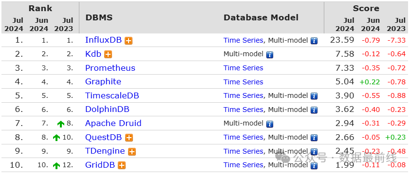 TDengine 在墨天轮国产数据库流行度排名14,是排名最高的时序数据库,也是所有非关系型数据库中排名最高的。在DBEngine流行度排名上,位居时序数据库全球第九,github 上 23.1k Star,可见其在国际和开源领域也有不小的影响力。