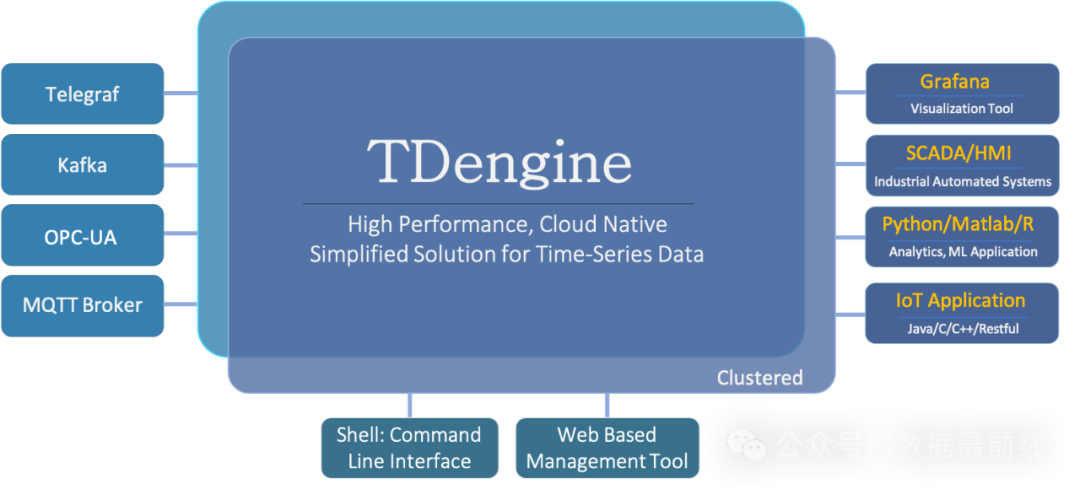 管理上,TDEngine提供了基于Web页面的管理控制台,对运行中的TDEngine实例进行监控和滚利,也提供了交互式的命令行程序,便于管理集群,检查系统状态以及数据查询。