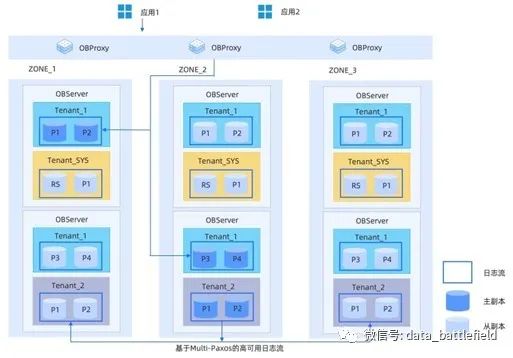 1.0在设计上把存储事务SQL做成紧耦合的架构,将原来的三个Server合成一个OBServer节点,处理存储事务SQL;而且将高可用的粒度,由原来机器级别切分成若干个Zone。并且引入了多租户概念,实现较好的资源隔离。