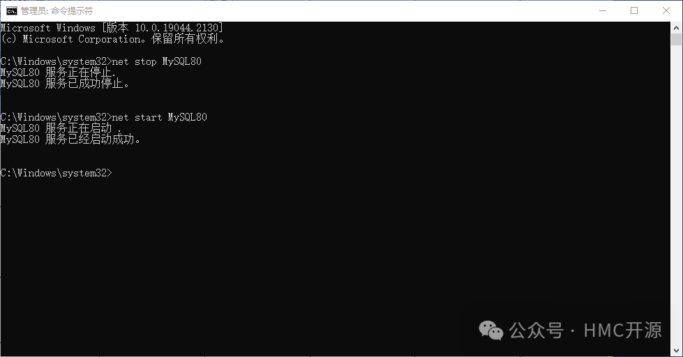 # 停止 MySQL 服务命令: