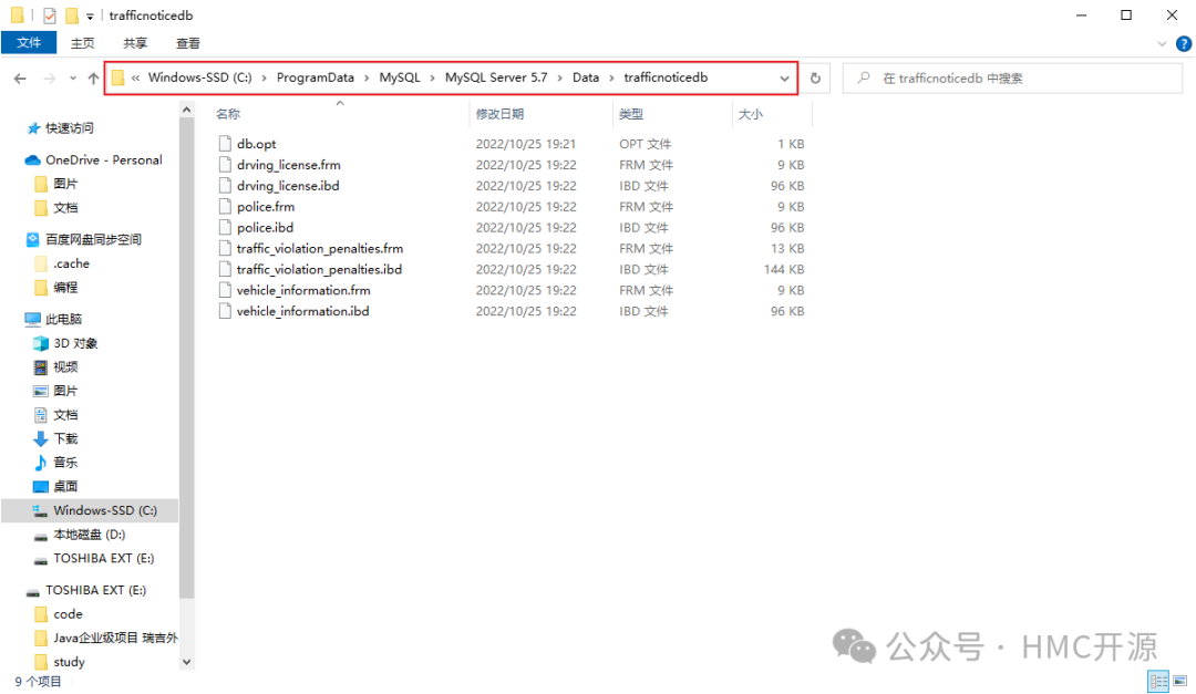 1)在Navicat或其他客户端工具中查看创建后的BooksDB数据库和TrafficNoticeDB数据库的状态,查看数据库所在的文件夹;