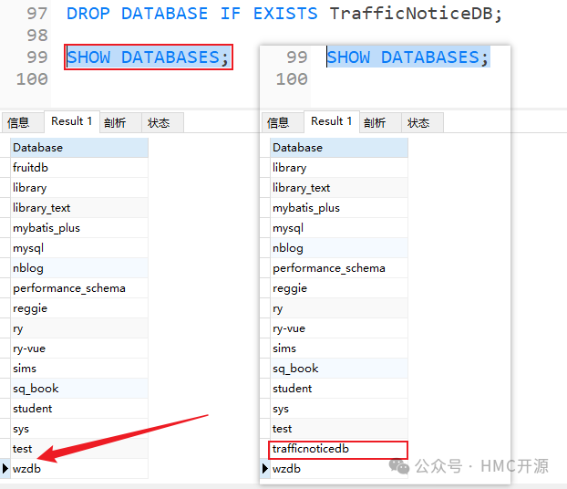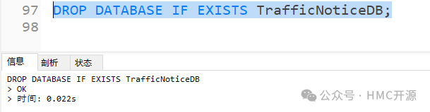 2)使用SQL语句删除TrafficNoticeDB数据库;