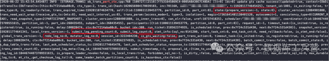 | is_gts_waiting:true | 提交日志过程中,在等最新的 GTS。 | GTS 刷新出现了问题。 |
