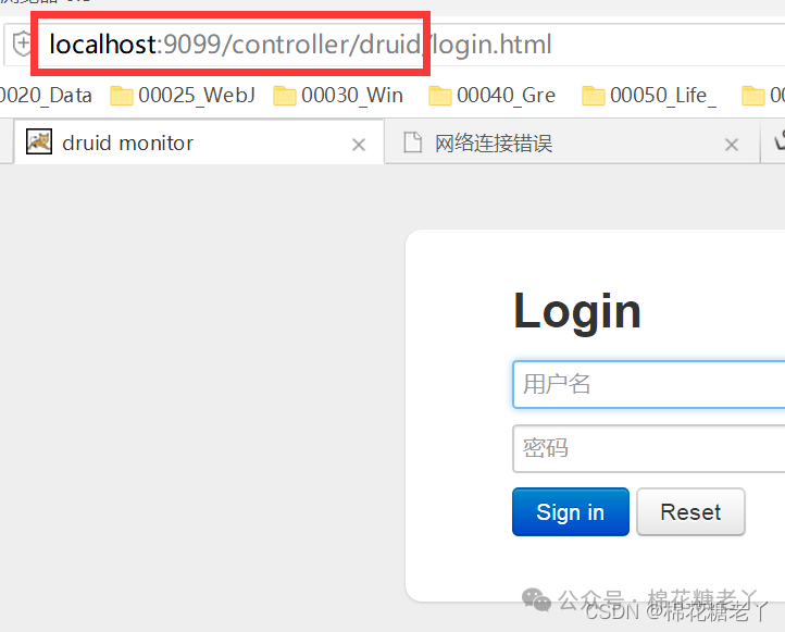 重新构建工程并启动tomcat,启动项目http://ip:端口/项目名称/druid/ 即可进入到druid监控面板的登录页面,如下图。