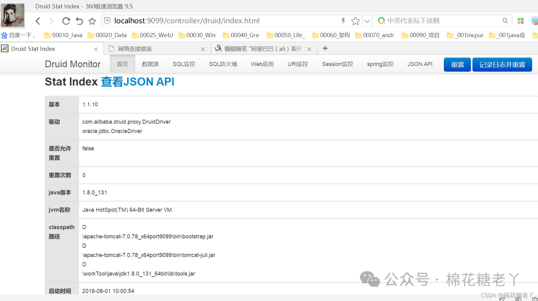 在监控面板中看到有spring监控这个功能,如果没有进行配置,则功能不能用,查了一下druid的文档,最终开启了spring监控功能。
