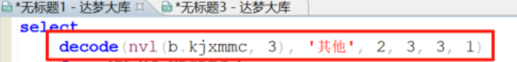SQL> select decode(nvl(null,3),'其他',2,3,3,1) from dual;