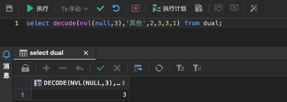 SQL> select decode(nvl(null,'3'),'其他',2,'3',3,1) from dual;