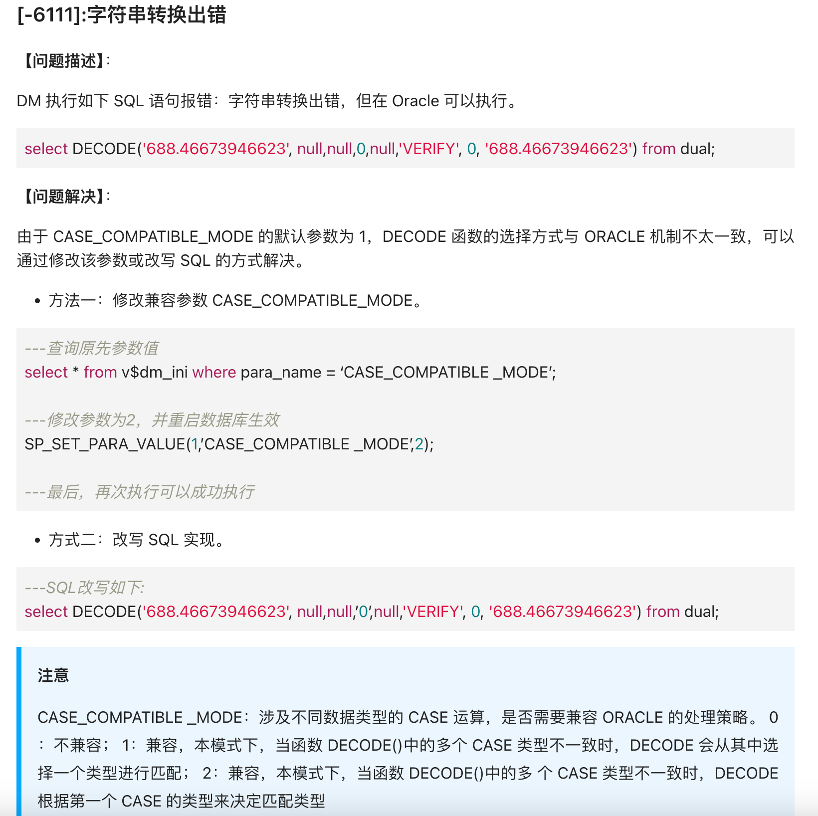 我第一反应可能是 达梦 decode 函数不支持隐式转换,所以改写了一下 SQL: