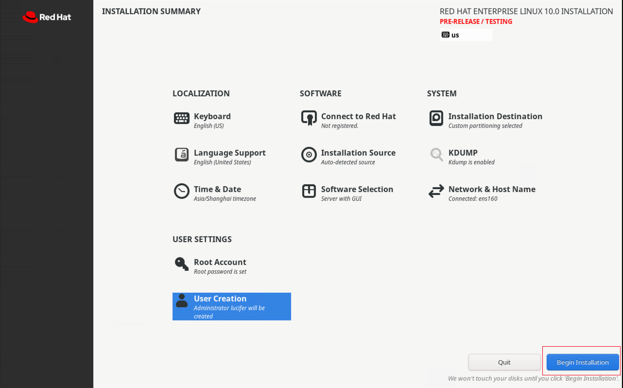 至此,RHEL 10.0 Beta 版就安装完成了!