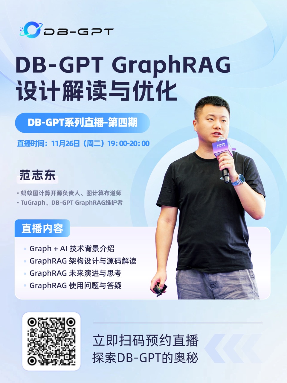 本期,我们邀请到了社区的老朋友,也是DB-GPT GraphRag的维护者范志东老师,我们将聚焦在《DB-GPT GraphRAG 设计解读与优化》这一主题,带您一起探索图计算与人工智能的深度融合。