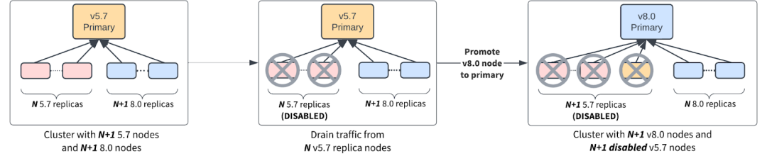 • 节点复制,添加v8.0副本节点,与v5.7一起运行