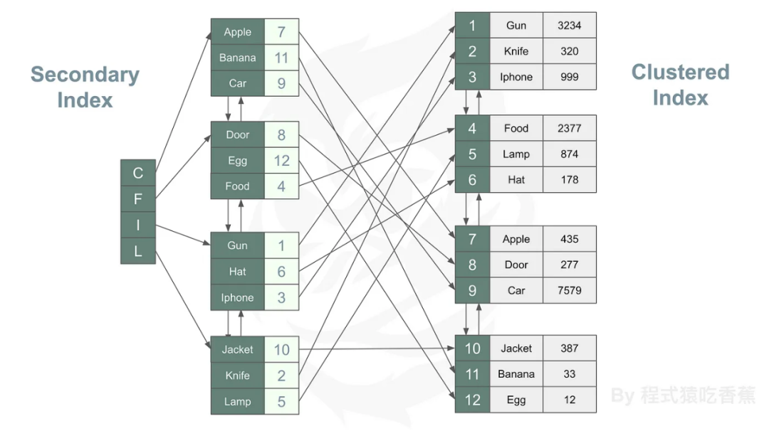 secondary inedex和聚集索引关系图: