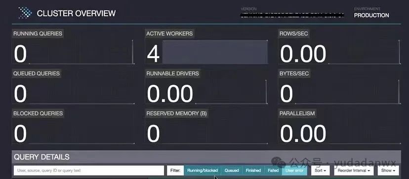 展示集群状态和查询细节 展示目前执行的计划、性能情况等等
