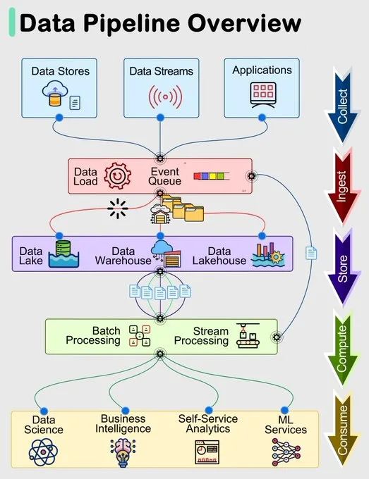数据管道的高效运行不仅依赖于每个阶段的组件和工具,还需要整体的协调和优化。通过标准化数据收集、高效的消化机制、适当的存储解决方案、灵活的计算框架和多样化的数据消费方式,可以确保数据在整个过程中保持一致性和高质量。